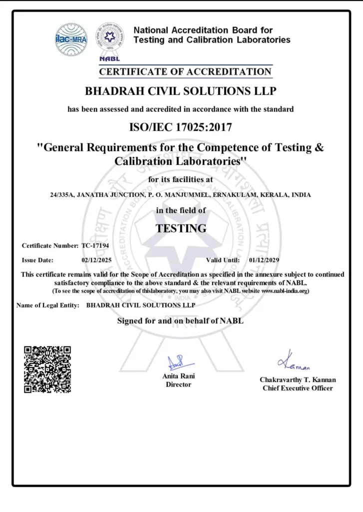 Empowering construction excellence through expertise and dedication – Bhadrah Civil Solutions, your trusted partner for superior testing services and project success.